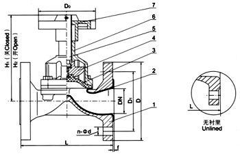英標隔膜閥主要外形尺寸和連接尺寸 (mm)